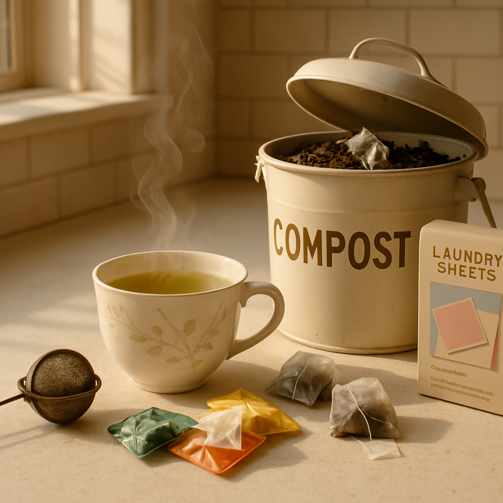 A couple of events reminded me that it was time to think a little more seriously about the tea I drink daily. The first happened while I was making an inventory of my personal plastic use, (“Make an Inventory” posted Sept 5, 2024). For a month, instead of tossing my plastic waste in the appropriate bin, I put it aside to learn what plastic waste I was accumulating. It was eye-opening to see how large a pile I’d built up of the little plastic-layered foil envelopes that tea bags are often packaged in. I decided it was time to search out brands that wrapped the bags in paper. However, I continued tossing the used tea bags in my compost bin.